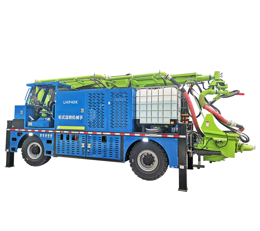 LHP40K轮式湿喷机械手是一款综合国内隧道初支混凝土喷浆工艺及海拔2000米以下地区施工工况研发升级的一款专用设备,最大喷射方量达到40m³/h,广泛应用于隧道工程、水利工程、市政工程、道路桥梁工程等。该设备具有喷射方量大、不易堵管、回弹低、性能稳定可靠等特点,既适用于全断面,也适用于半断面和多阶梯开挖。