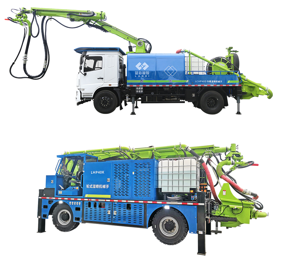 LCHP40D车载湿喷机械手采用汽车底盘,是一款综合国内隧道初支混凝土喷锚工艺及施工情况研发升级的一款专用设备。该设备具有喷射方量大(最大喷射方量40m³/h)、不易堵管、回弹低、机动性好、性能稳定可靠等特点。解决了传统小型湿喷机难以满足大、长隧道混凝土喷射的不足,提高了施工效率,减少了混凝土消耗量。