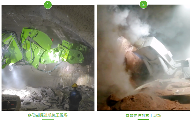 蓝海智装LDJ400系列多功能掘进机是一款运用于隧道非爆开挖的专用设备,主要利用工作部的高频锤或破碎锤冲击破岩、斗齿或钎杆楔入围岩中的扳撬破岩和利用围岩下方的临空面重力作用自动破岩(高频锤主要针对40MPa以下岩石;硬度更高、发育不好的岩石采用破碎锤施工)。采用本地控制+无线遥控控制方式,能适应6~9.5米隧道开挖,集高频破岩、软土快挖、轮廓修整、喷雾除尘等功能于一体,适用于限制爆破地段(如机场、居民聚集区和野生动物保护区等)的施工,适应性强,满足多类围岩施工,减少超欠挖、塌方等情况发生。
