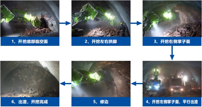 在IV、V级围岩下综合开挖效率可达50m³/h;